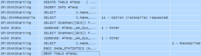 Nevertheless, it does show how most people expect things to work regarding statistics, temporary table lifetimes, and compilation: